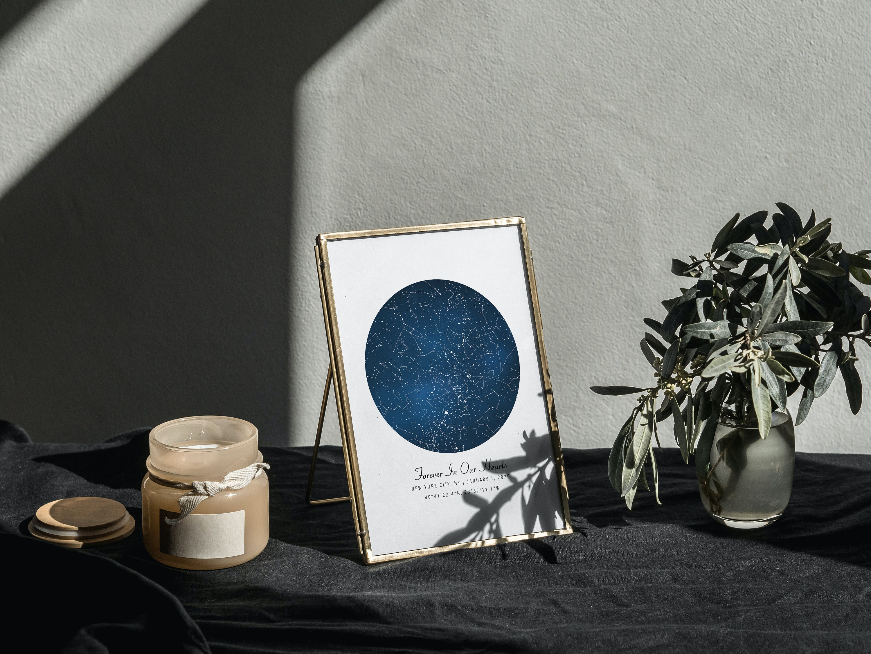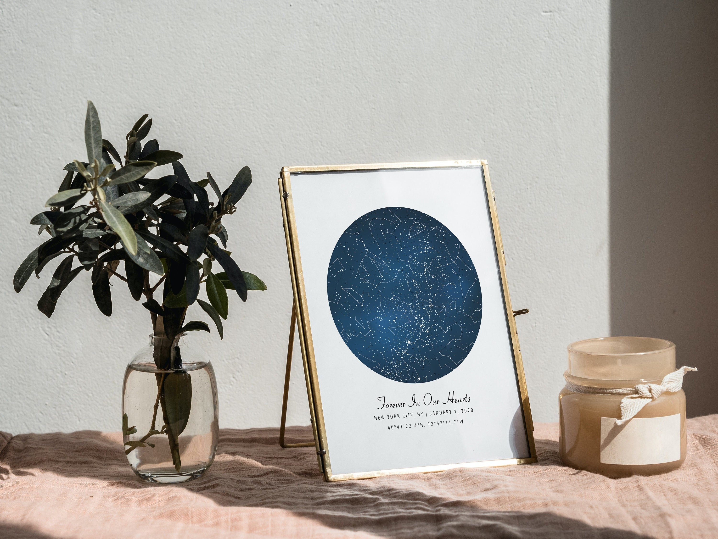 This listing is for a fine art print (frame not included) for families who have experienced pregnancy and infant loss. A fully customizable map of the stars and constellations is a beautiful, unique, and thoughtful way to celebrate an angel baby's life and memory.