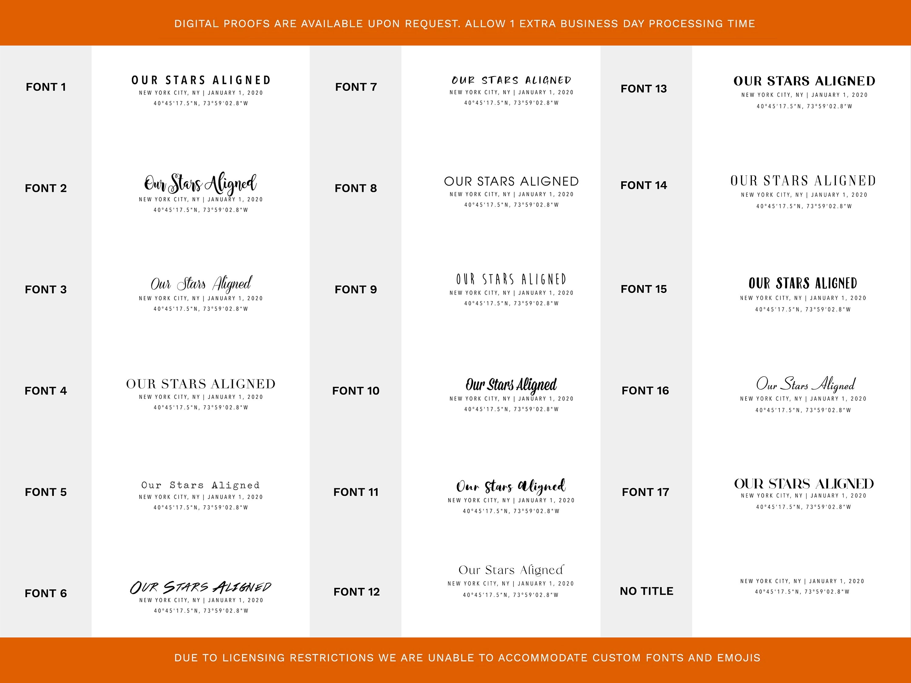 โถ Select the font of your choice for the custom title (If no font is selected Font #1 will be used by default). ***Please note we are unable to accommodate requests for custom fonts and emojis***โจโจ