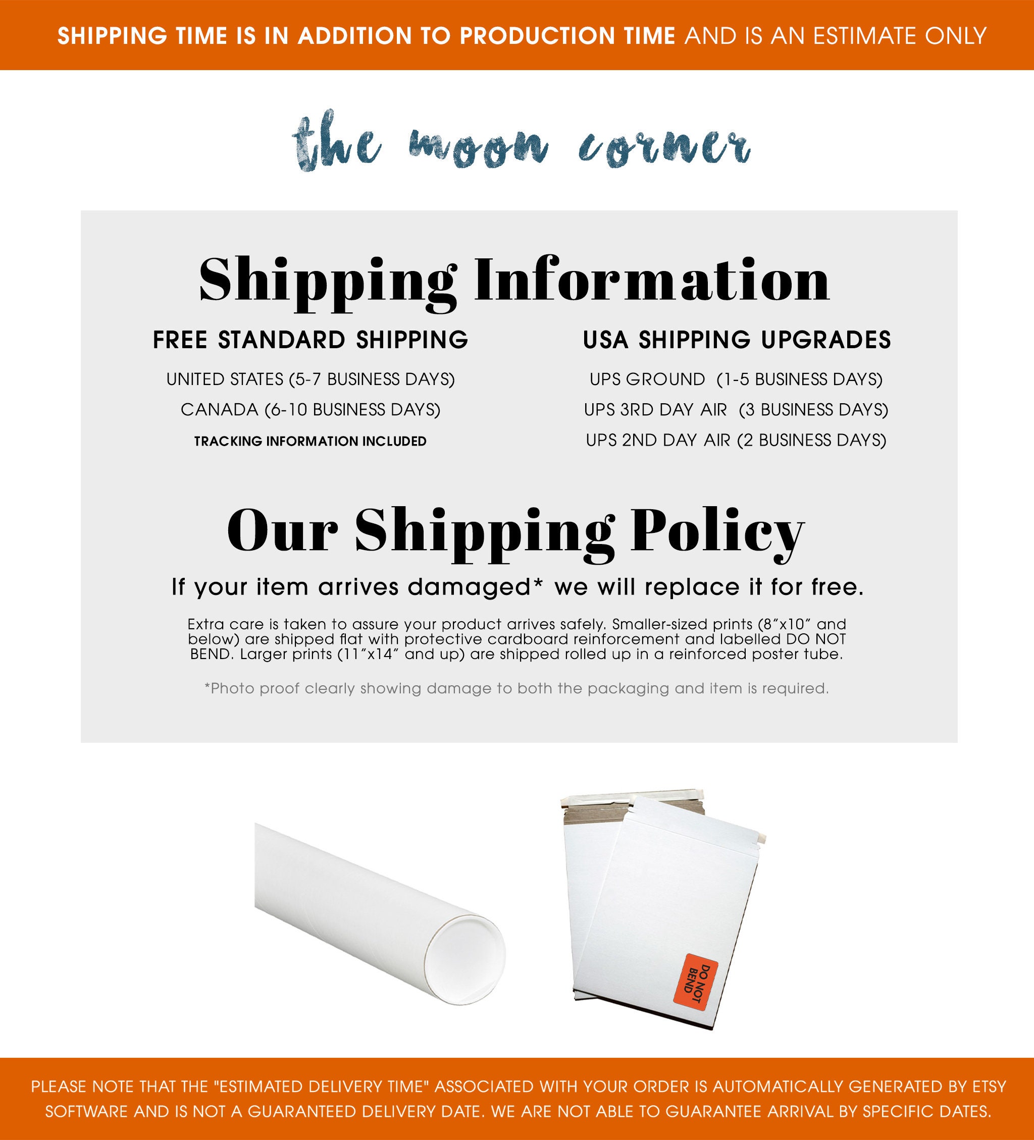 Free Standard Shipping is sent with UPS Mail Innovations, which partners with USPS for the final stage of delivery. USPS is experiencing significant delays and shipping times are unpredictable.If your order is time-sensitive we recommend choosing UPS Ground as the shipping method. We can also provide you with a free digital proof that can be used as a 'placeholder' until your package does arrive. Please contact us or leave a note at checkout requesting a digital file and it will be included free of charge.